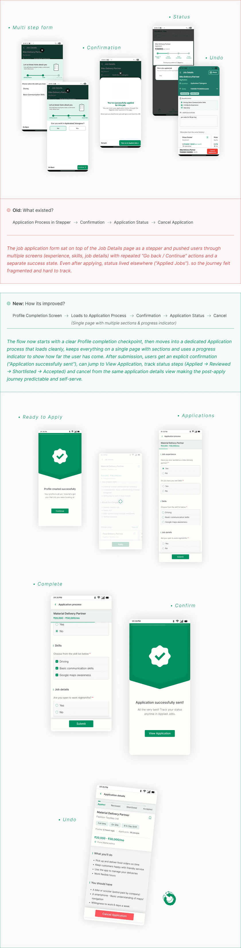Job Application Flow Redesign - From stepper pop‑ups to a guided, end‑to‑end application journey