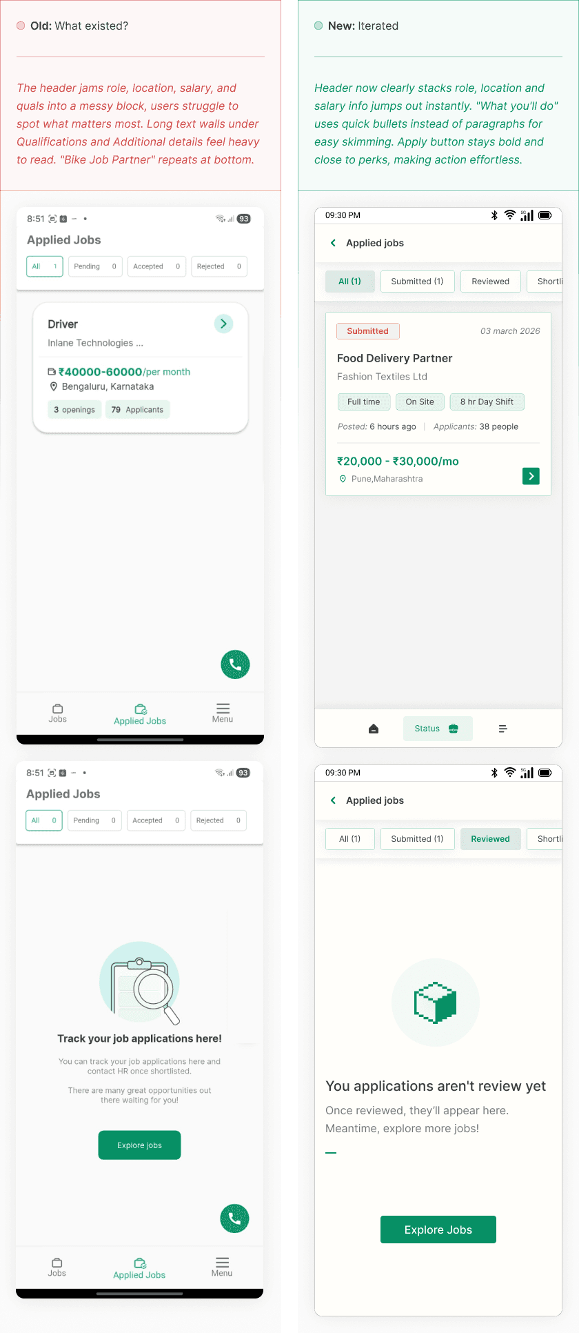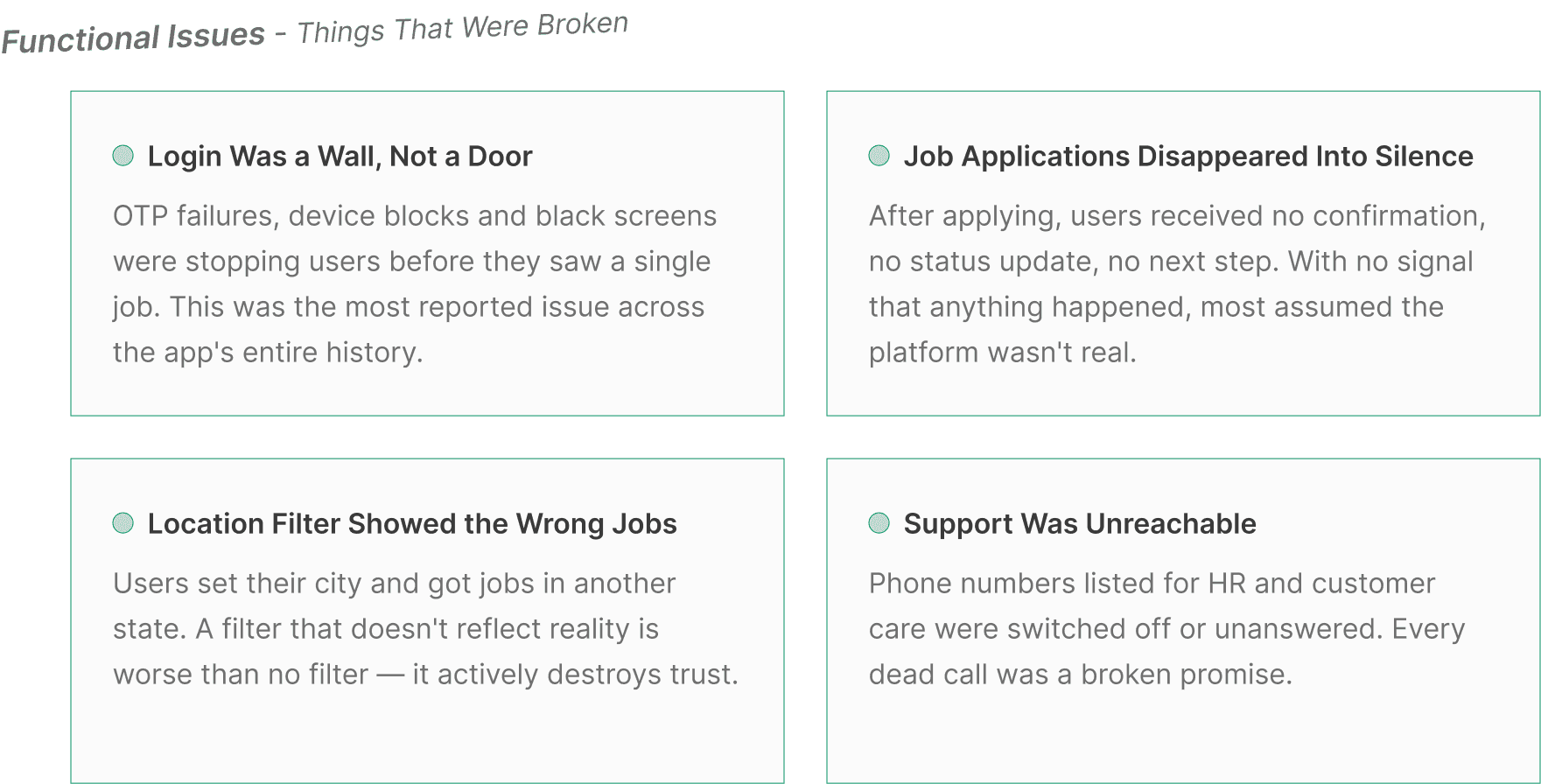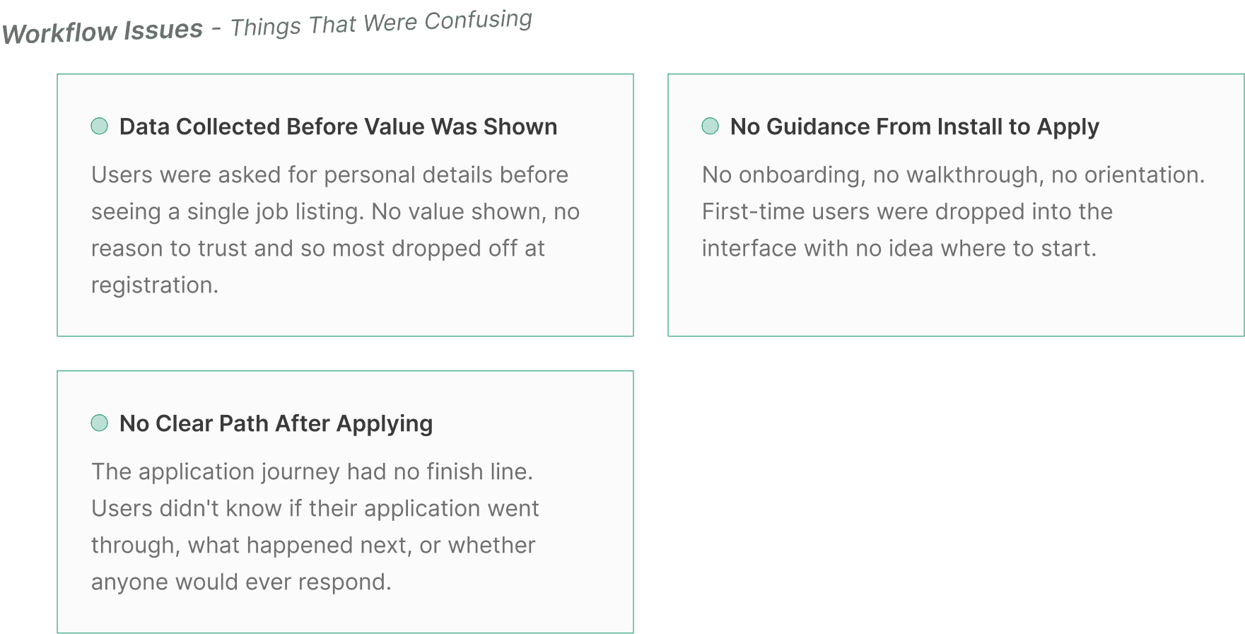 It was clear that users weren't leaving because the jobs weren't real. They were leaving because the experience kept getting in the way. Every drop-off happened at a moment where the app asked for trust it hadn't yet earned.