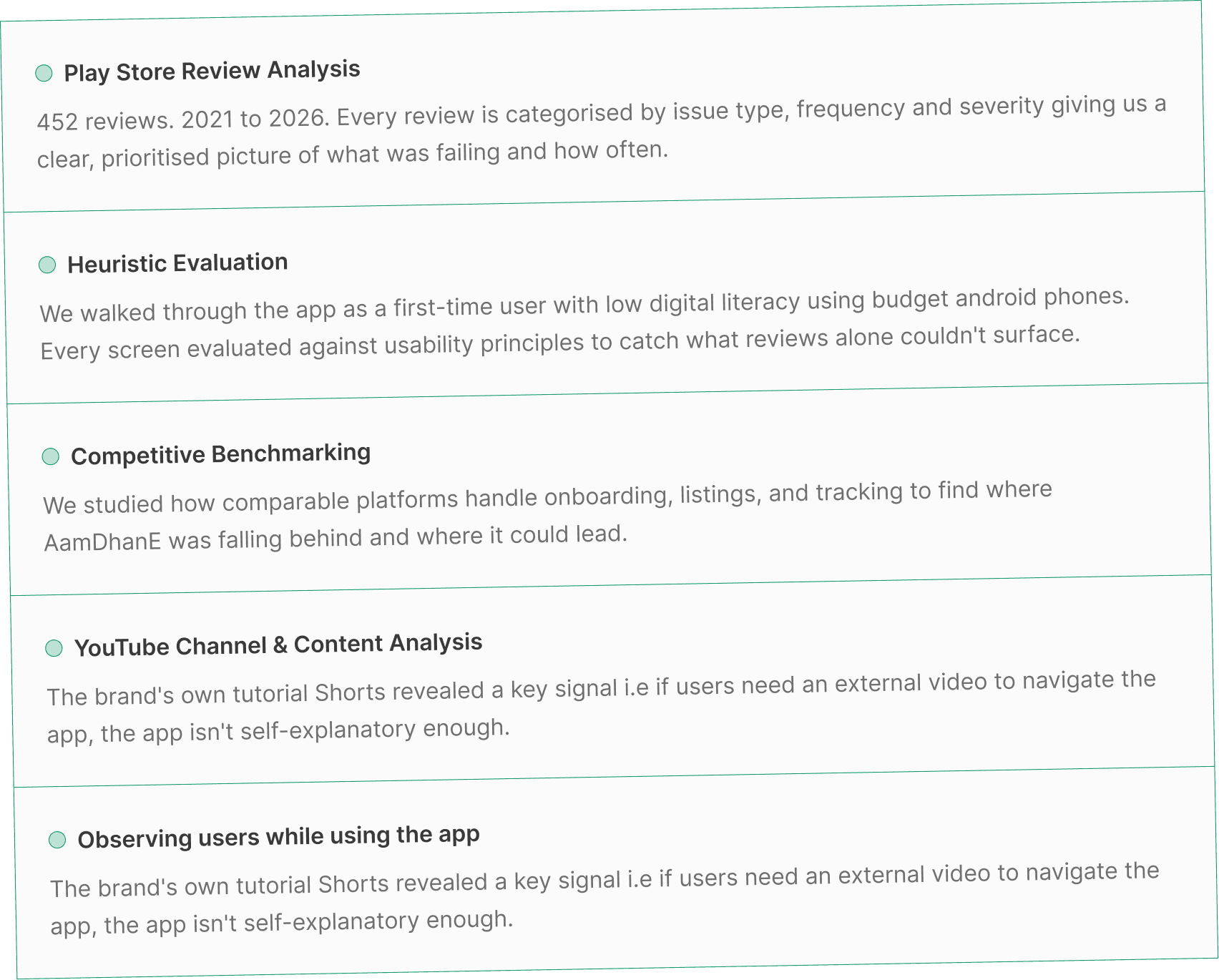 Before designing anything, we needed to understand where and why users were dropping off. Since the app was already live with real users, we didn't start from assumptions — we started from evidence.