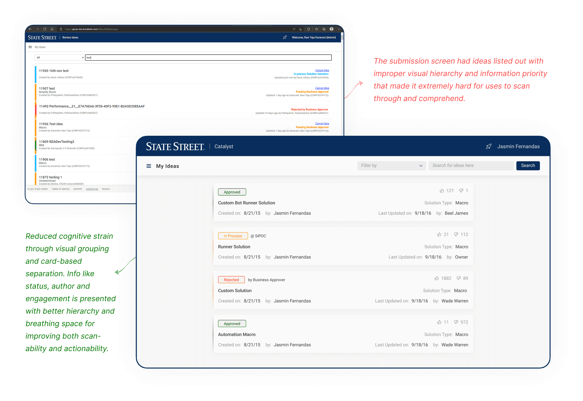 Within StateStreet multiple idea management portals (IMPs) were established and were dedicated to a specific team which worked strictly on the type of ideas that only catered to their use cases.